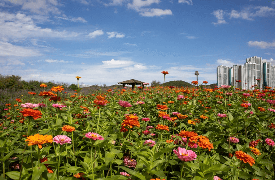 그리고 발길에 닿는 대로 걷다 보니 스포츠센터가 있는 주변에 백일홍단지가 조성되어 있었어요.