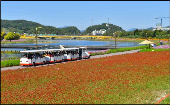 황룡강을 따라 펼쳐진 꽃길과 포토존 그리고 각종 체험들을 해볼 수 있는 부스 장소들이 마련되어 있어요.